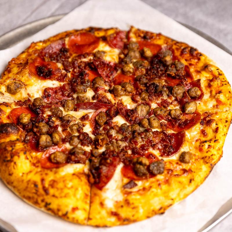 Pepperoni | Italian Sausage | Habanero | Salami | Meatballs | Bacon | Hot Honey Drizzle | Shaved Parmesan Cheese | Vegan Pepperoni
